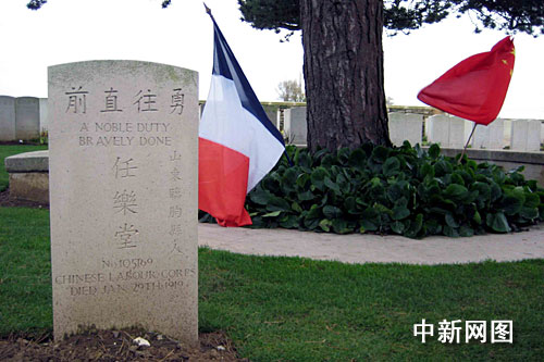 據(jù)了解,第一次世界大戰(zhàn)期間,約十四萬(wàn)中國(guó)勞工遠(yuǎn)渡重洋來(lái)到歐洲前線(xiàn)。他們主要集中在法國(guó)北部從事戰(zhàn)地后勤的工作,如維修道路、營(yíng)房,挖掘戰(zhàn)壕,裝卸彈藥,救護(hù)傷員,掩埋尸體等。一九一七年八月,中國(guó)政府正式對(duì)德宣戰(zhàn)后,部分華工加入法軍,直接參加戰(zhàn)斗。一九一八年九月至十一月,德國(guó)等同盟國(guó)先后戰(zhàn)敗投降,華工為中國(guó)爭(zhēng)得戰(zhàn)勝?lài)?guó)地位立下汗馬功勞,但同時(shí)也付出了沉重代價(jià):中國(guó)勞工中有兩萬(wàn)人再也沒(méi)能踏上故鄉(xiāng)的土地,這些客死他鄉(xiāng)的中國(guó)勞工大部分安葬在法國(guó)北部諾萊特等墓園中,每個(gè)人的墓碑上都刻有中文的銘文。