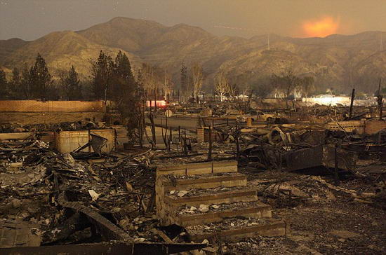 加州的山火季節(jié)過去通常是在六月至十月期間。由于全球氣候變暖使加州冬季溫度提高、降水減少,加州的山火已成為持續(xù)全年的威脅。2007年10月,南加州地區(qū)發(fā)生了30多處火情,火災持續(xù)近一周時間,大火燒毀了2000套房屋,并迫使50萬人疏散。(蕭熙)