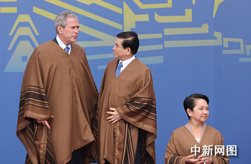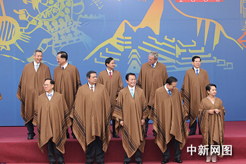為期兩天的亞太經(jīng)合組織第十六次領(lǐng)導(dǎo)人非正式會(huì)議,二十三日在秘魯首都利馬結(jié)束。圖為各成員領(lǐng)導(dǎo)人在會(huì)后身著南美披風(fēng)合影。齊彬攝