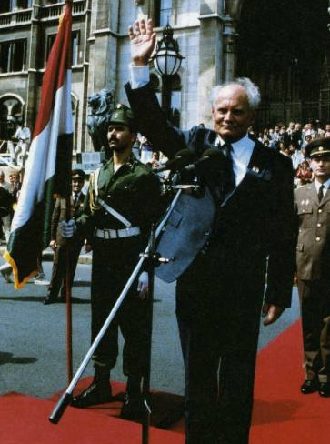 資料照片:1990年8月,根茨·阿爾巴德就任匈牙利共和國總統(tǒng)。