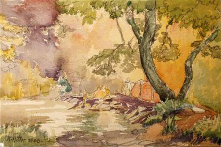 據(jù)當?shù)孛襟w報道,在這些畫作中,有一幅據(jù)信是希特勒的自畫像,畫面中的男子身著棕色服裝,凝視著葡萄酒色的河水,畫作落款時間是1910年,簽名是希特勒的名字“A.Hitler”,而在畫中人物的身上則草寫著希特勒名字的縮寫“A.H.”。這幅畫以1萬英鎊拍出,買家稱打算將這幅畫掛在家中或辦公室里。