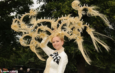 中新網(wǎng)6月19日電 據(jù)英國(guó)媒體報(bào)道,英國(guó)皇家賽馬會(huì)18日進(jìn)入第三天,也就是英國(guó)人所稱(chēng)的“淑女日”,依照傳統(tǒng),這一天女士們都會(huì)戴著造型奇特創(chuàng)意十足的帽子亮相,爭(zhēng)奇斗艷吸引眼球。