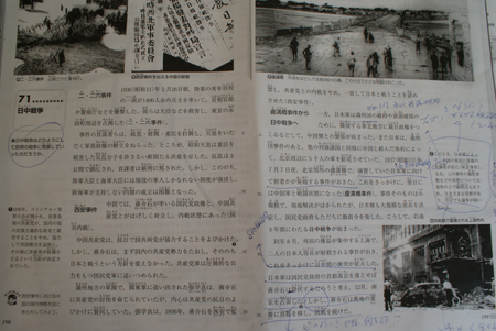 除了用詞之外,對輔助照片的運(yùn)用也值得注意。介紹南京大屠殺史,通常使用日軍進(jìn)入南京的照片。而沒有一本書中采用了南京市民被日軍殘害的照片。而日本學(xué)生們在這樣的教科書中,根本找不到日軍殘暴行為的具體痕跡。