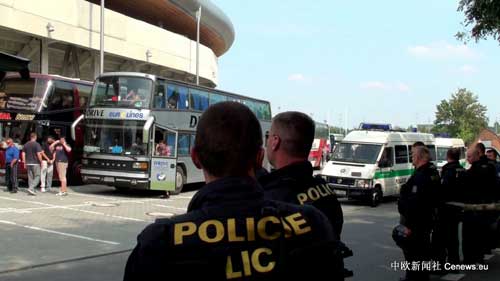 中新網(wǎng)布拉格8月21日電 滯留在捷克首都布拉格的塞爾維亞貝爾格萊德紅星隊球迷21日已全部離開布拉格回國。當?shù)貢r間21日下午15時30分(北京時間21日下午21時30分)最后一批球迷分乘5輛大客車在警車“護送”下駛離布拉格伊甸園體育館。