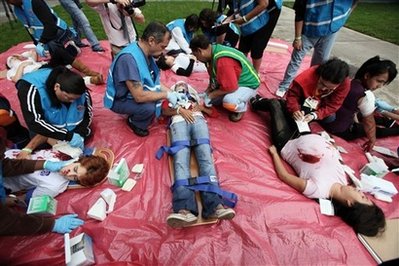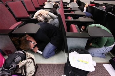 根據(jù)地震演習組織的數(shù)字統(tǒng)計,超過一千萬加州居民參加了今天上午舉行的美國有史以來最大地震演習,以紀念舊金山大地震二十周年。參與者在辦公室、餐館、公共交通工具、學校以及家中演練了在大地震來臨時,如何保護自己及援救他人。