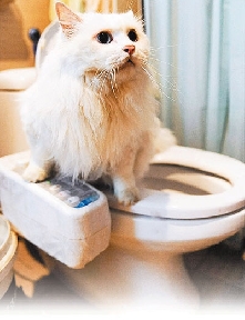 第4屆北京發(fā)明大賽參賽作品之一,可讓寵物在4至5周內(nèi)學(xué)會(huì)使用馬桶排便。發(fā)明者畢榮華制作出一個(gè)培訓(xùn)箱:在三層合一的座架上安裝帶有定位釘?shù)淖,并將一個(gè)帶有管塞和蓋板(或排架)的漏斗裝在座面上。培訓(xùn)過(guò)程中,逐漸加高座架、減少漏斗中的貓沙,加到第三層時(shí)與馬桶同高,最后將座面移到馬桶上并去掉漏斗,不再使用貓沙,這時(shí)貓咪就會(huì)習(xí)慣蹲坐在馬桶上排便。
