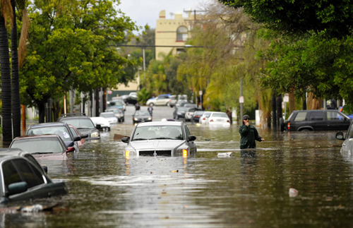 自十七日開始,美國加州南部地區(qū)普遍遭遇暴風(fēng)雨襲擊,部分地區(qū)發(fā)生山洪和泥石流。今天,暴風(fēng)雨再次肆虐洛杉磯等地,美國國家氣象局中午一度發(fā)布南加州沿海將發(fā)生龍卷風(fēng)的警報(bào)。