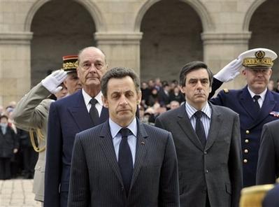 中新網(wǎng)3月18日電 綜合報道,法國政府17日為去世的第一次世界大戰(zhàn)最后一位老兵拉扎爾·蒙蒂塞利舉行國葬,以此向所有參加過一戰(zhàn)的法國軍人致敬。法國總統(tǒng)薩科齊和前總統(tǒng)希拉克17日上午在巴黎榮軍院參加為此舉行的閱兵儀式,全國各地政府機(jī)關(guān)和學(xué)校等建筑下半旗致哀。