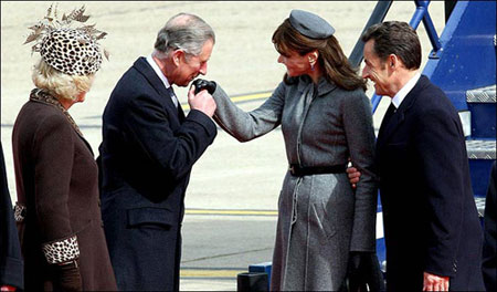 當(dāng)?shù)貢r間3月26日,法國總統(tǒng)薩科齊攜新婚妻子卡拉·布呂尼抵達英國倫敦,開始為期兩天的訪問。當(dāng)天,查爾斯王儲與康沃爾公爵夫人卡米拉特地前往機場迎接。