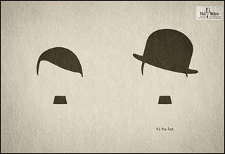 據(jù)英國(guó)媒體報(bào)道,在Hut Weber公司的這則廣告中,喜劇演員卓別林的圓頂禮帽下是希特勒標(biāo)志性的頭發(fā)和胡須。下方,一行英文寫道:“這就是帽子。”