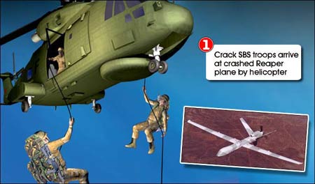 據(jù)報道,這架“死神”無人駕駛偵察機(jī)在此前執(zhí)行一項特別任務(wù)時墜落。英國皇家特種舟艇部隊(SBS)派出人員,乘直升機(jī)降落在偵察機(jī)墜落地點(diǎn)附近,將包括相機(jī)和電腦存儲器在內(nèi)的一些高機(jī)密儀器取走。