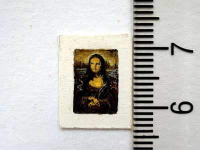 英國漢普郡一名藝術(shù)家日前繪制出了一幅世界上最小的《蒙娜麗莎的微笑》:11毫米長、7毫米寬,大小看起來僅相當(dāng)于一枚普通郵票的四分之一。
