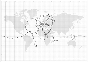 細(xì)的托運(yùn)路線和順序。55天之后,這個箱子在橫跨全球6個大洲62個國家后,順利回到了起點(diǎn)——斯德哥爾摩,全部行程約110664公里。然后,埃里克借助電腦將GPS記錄下的路線串聯(lián)起來,繪出一幅“一筆劃的自畫像”。就在舉世驚嘆之際,他卻于日前在其官方網(wǎng)站上“不打自招”,所謂“自畫像”不過是他為完成畢業(yè)設(shè)計(jì)而虛構(gòu)出來的一場鬧。