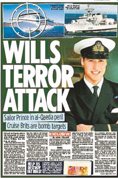 英國威廉王子目前正以海軍中尉的軍銜在英國海軍加勒比海上的護衛(wèi)艦“鐵公爵號”上服役。令人震驚的是,“基地”旗下的一個恐怖組織正密謀派一艘裝滿數(shù)百公斤炸藥的快艇,對“鐵公爵號”巡游海域的超級豪華郵輪發(fā)動“911”式的自殺恐怖襲擊,一旦得逞將造成郵輪上數(shù)千人死亡,也將令威廉王子陷入危險之中。慶幸的是,MI6和CIA及時發(fā)現(xiàn)了這一可怕的“海上911”襲擊計劃。