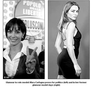 薩賓娜稱,瑪拉以前只是一名無上裝裸體模特,后轉(zhuǎn)行進入電視圈成為主持人。2006年,她被貝盧斯科尼相中,并在后者的提攜下從政。令意大利人目瞪口呆的是,2個月前,瑪拉竟被再次當選總理的老貝任命為意大利機會平等事務(wù)部長,成為老貝內(nèi)閣中最年輕的成員。