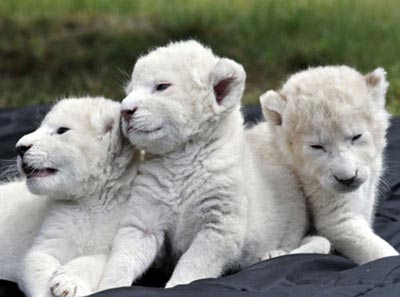 這次亮相的是其中3只小白獅,因?yàn)榈?只小獅子沒(méi)存活下來(lái)。