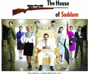 一位很像富人的男人坐在黃金椅座上,周圍是他衣著雍容的家人——這一幕在美國電視劇中并不少見,但這次的主角可不是常人,他是薩達(dá)姆。