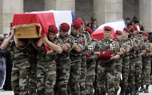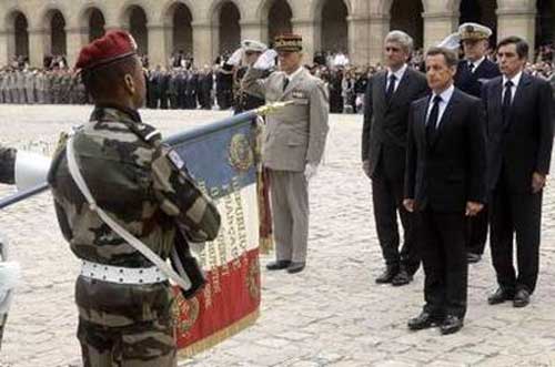 法國總統(tǒng)薩科齊、總理菲永和政府內(nèi)閣部長以及部分議會議員出席了儀式。國葬儀式后,參加儀式的人員在榮軍院的圣路易教堂舉行了宗教追悼儀式,薩科齊在儀式上致悼詞,贊揚了10名陣亡法國戰(zhàn)士的功績。