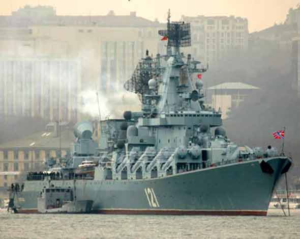 俄黑海艦隊旗艦?zāi)箍铺栄惭笈?資料圖片)