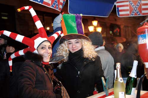 中新網(wǎng)1月2日電 據(jù)《歐洲萬事達時報》報道,2008年的最后一天,在午夜時分,匈牙利首都布達佩斯市中心的瓦茨街(步行街)廣場,來自不同國家的游客和匈牙利人在這里度2008迎2009的到來。人們戴著五顏六色的假發(fā)與各種帽子,拿著香檳,扛著、拿著各種款式的喇叭邊走邊吹走入步行街迎接2009年。