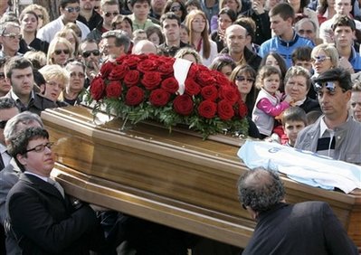 意大利中部城市拉奎拉的居民8日為地震中遇難的人舉行了首批葬禮。由于震區(qū)目前余震不斷,所以從廢墟中挖掘更多幸存者的希望越來(lái)越小。星期五將在拉奎拉為地震死難者舉行一個(gè)集體葬禮,這一天意大利全國(guó)將為死難者哀悼。