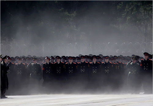 據(jù)報道,今年的紅場閱兵式分為三個階段,先是傳統(tǒng)的國防部長檢閱,在國家元首下達檢閱開始的命令后,由4000名官兵,代表著衛(wèi)國戰(zhàn)爭中十個戰(zhàn)線、四十五個參戰(zhàn)的英雄部隊組成方隊,正步走過紅場接受檢閱;此后是武器檢閱,最后是空軍部隊出動的各式戰(zhàn)機,飛越紅場上空。