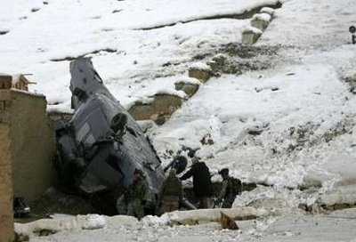 駐阿富汗美軍17日再度發(fā)生直升機(jī)墜毀事件:一架“支奴干”大型直升機(jī)在阿東部地區(qū)“硬著陸”,結(jié)果造成一名美軍喪生。同一天,阿首都喀布爾17日發(fā)生汽車(chē)炸彈爆炸事件,造成一名美軍和四名阿富汗平民被炸死。僅僅24小時(shí)前,一架美軍“黑鷹”直升機(jī)在喀布爾附近墜毀,但7名機(jī)上人員全部生還。
