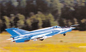 米格-21是根據(jù)朝鮮戰(zhàn)爭中噴氣戰(zhàn)斗機(jī)的空戰(zhàn)經(jīng)驗(yàn)研制而成,其飛行速度為2馬赫——聲速的2倍,輕巧靈活。