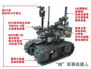 部署到阿富汗的智能機(jī)器人“赫耳墨斯”主要用于探穴鉆洞,它身上安裝有兩個(gè)照相機(jī),能爬進(jìn)漆黑洞穴并向外發(fā)送圖片;美軍機(jī)器人“劍”在伊拉克戰(zhàn)場更是神通廣大,它能輕易通過任何阻礙,備彈200發(fā),裝備一挺經(jīng)改造的M249型機(jī)槍,射速高達(dá)1000發(fā)/分鐘,火力強(qiáng)度足以與一挺重機(jī)槍媲美;而“背包”機(jī)器人則能在巷戰(zhàn)環(huán)境中捕捉、分辨反美武裝狙擊手的細(xì)微動(dòng)靜;“嗅彈”機(jī)器人能靈敏地嗅出偽裝起來的爆炸物;名為“仿生蒼蠅”的機(jī)器人則可做一些復(fù)雜的手術(shù)……