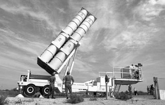 7日,以空軍先是在地中海上空用F-15戰(zhàn)機(jī)發(fā)射了一枚“藍(lán)雀”導(dǎo)彈,用來(lái)模擬伊朗“流星-3”彈道導(dǎo)彈,特拉維夫南部的帕爾瑪希姆空軍基地的“箭”式-2型反導(dǎo)系統(tǒng)隨即作出反應(yīng),成功阻截這枚導(dǎo)彈。此次測(cè)試是以色列空軍和美國(guó)導(dǎo)彈防御局聯(lián)合進(jìn)行的。以國(guó)防部長(zhǎng)巴拉克坐在一架直升機(jī)上觀看了這次測(cè)試。