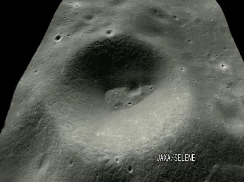 該畫像拍攝的區(qū)域為月球背面北緯60至66度附近、寬約16公里、長約180公里的范圍,從中可見直徑約為60公里的“DYSON”隕石坑,還可看見附近的稍小一隕石坑內(nèi)側(cè)存在著更多的小型隕石坑。在南極附近拍下的圖像中,也可發(fā)現(xiàn)有許多隕石坑。
