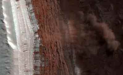 美飛行器拍攝到火星北極附近區(qū)域山崩照片(圖)