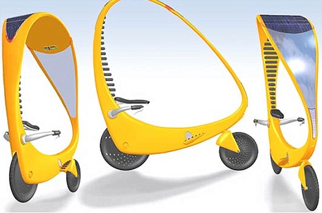 據(jù)英國媒體25日報(bào)道,這種亮黃色的太陽能自行車外觀看起來和普通的自行車沒有多大區(qū)別;不過在自行車上卻載有一個(gè)可以接受太陽能的天蓬裝置。當(dāng)使用者蹬自行車上的腳踏板后,天蓬將會(huì)把接受到的太陽光轉(zhuǎn)化成能量儲(chǔ)存在自行車電池中,該電池通過放電驅(qū)動(dòng)自行車后輪處的電子發(fā)動(dòng)機(jī),使得自行車行進(jìn)。