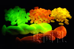 這種蠶被導(dǎo)入了水母、珊瑚等的熒光蛋白質(zhì)基因,所結(jié)的繭在自然光照射下呈淡綠色或粉色,但經(jīng)藍(lán)色發(fā)光二極管等光線照射后,通過(guò)濾鏡觀察則呈熒光色。