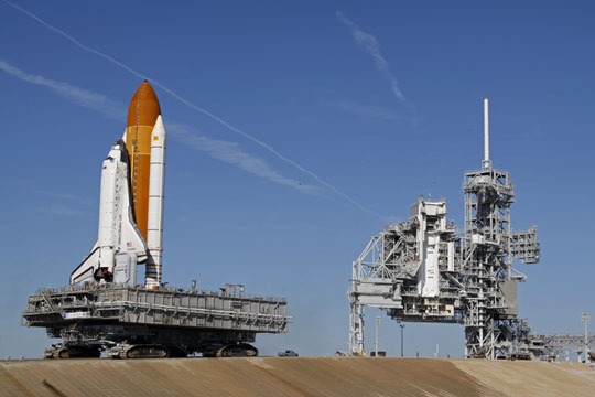 中新網(wǎng)1月16日電 美國穿梭機發(fā)現(xiàn)號當?shù)貢r間14日運抵發(fā)射臺,準備下月中發(fā)射升空。