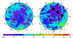 該天文臺的研究小組根據(jù)“月亮女神”的激光高度計測得的數(shù)據(jù)制成了月球表面緯度85度以上的極地的詳細(xì)地形圖,并根據(jù)該圖計算了2000年1月1日起的2千天的日照區(qū)域。