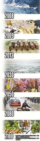 雖然確定這些潛在的巨變的日期并不容易,但是以下時(shí)間表有助于我們從宏觀角度看地球的未來。這個(gè)時(shí)間表,是根據(jù)近期多項(xiàng)研究和政府間氣候變化委員會(huì)報(bào)告所制訂。
