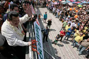 埃斯特拉達原本承諾不再過問政事,但依然堅持攻擊身陷貪污丑聞的阿羅約,要求其立即辭職。他還決定在下次菲律賓大選時加入反對黨陣營,埃斯特拉達13日在接受記者采訪時說,“我將考慮,F在我沒有競選的打算,但是如果人民要求的話,我可以拒絕嗎?”
