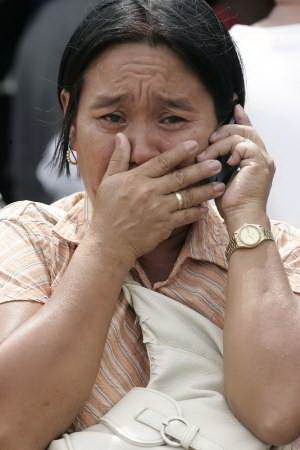 “群星公主”號渡輪乘客和船員親屬在宿務等待消息時對蘇爾皮西歐船運公司的雇員尖叫。一位婦女對該公司的一名雇員稱:“你無法讓我們的親人回來,你應當對此負責。”蘇爾皮西歐船運公司稱,它將向每位遇難者的家屬支付20萬比索(4500美元)的賠償,向幸存者支付一定數(shù)量的金錢。(黃歡)