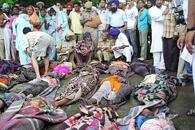 信眾在狹窄通道上爭相走避,其間不少婦孺遭踐踏,有人被摔落山坡。警方指,信眾亂竄時兒童首先跌倒,父母也無法保護他們。死者大多來自鄰近旁遮普邦,當中許多人死于窒息。一名女信徒說:“當時許多人在里面,當大家開始跌倒時,人人都爭相走避!