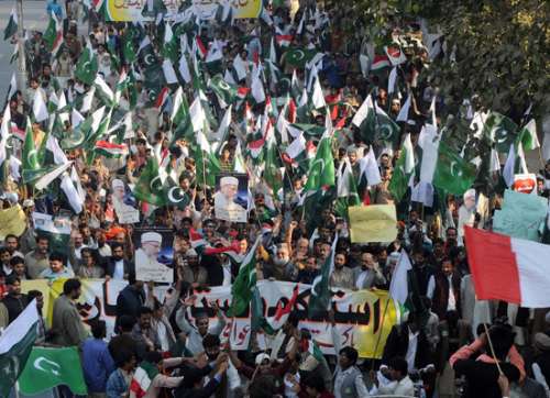 巴基斯坦民眾上街游行抗議印度當局指該國涉及孟買連環(huán)恐襲。
