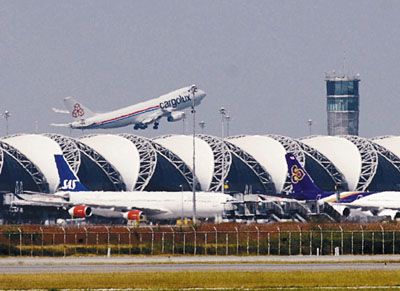 曼谷新機場的“空機”1日獲準起飛,到泰國其它地方接載旅客。