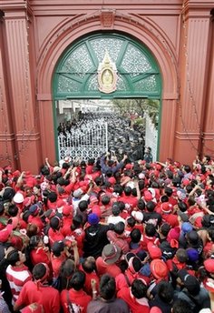 泰國支持他信的“紅衫軍”“反獨裁民主聯(lián)合陣線”(UDD)日前在國會大廈外進行示威時,誤將國王普密蓬和王后詩麗吉的畫像放在一幅帶有攻擊性標語的邊上,此舉倍受指責,反獨裁民主聯(lián)合陣線的領導人將面臨冒犯君主罪的起訴。