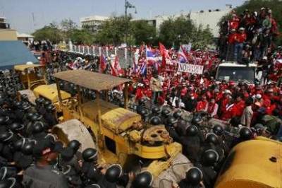 這次示威活動已經(jīng)迫使阿披實將其一周一次的議會會議易地,并延期至24日下午。阿披實表示,他相信安全力量會處理好這次集會事件,并強(qiáng)調(diào)他將在25日恢復(fù)在國會的工作。