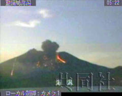 中新網(wǎng)3月10日電 據(jù)日本共同社報道,當(dāng)?shù)貢r間10日清晨5點(diǎn)22分,日本鹿兒島市的櫻島昭和火山口(海拔約800米)發(fā)生小規(guī)模噴發(fā),被噴出的大塊巖石最遠(yuǎn)飛落至山腹。