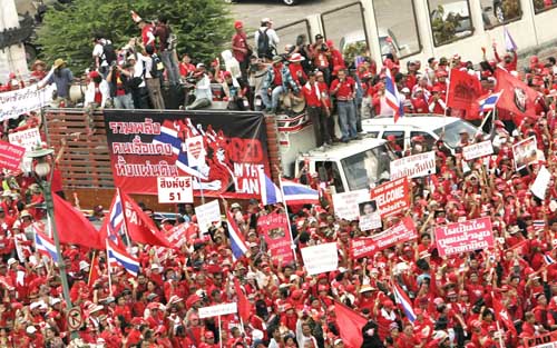 中新網(wǎng)3月26日電 據(jù)法新社報道,數(shù)萬“紅衫軍”26日在曼谷舉行大規(guī)模反政府集會,并向總理府方向前進。此前,示威者聲稱將包圍總理府。