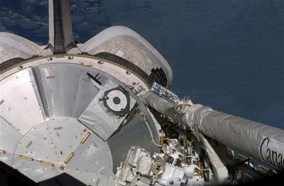中新網3月13日電 綜合報道,美國當地時間12日晚,“奮進”號航天飛機與國際空間站成功對接,但比原定時間遲了40分鐘。