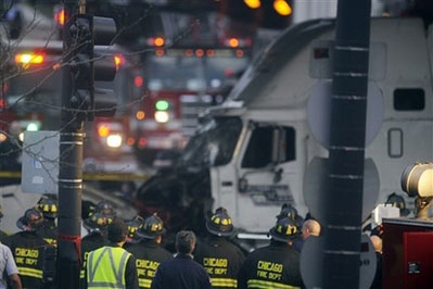 美芝加哥一集裝箱拖車(chē)撞入地鐵站至少23死傷(圖)
