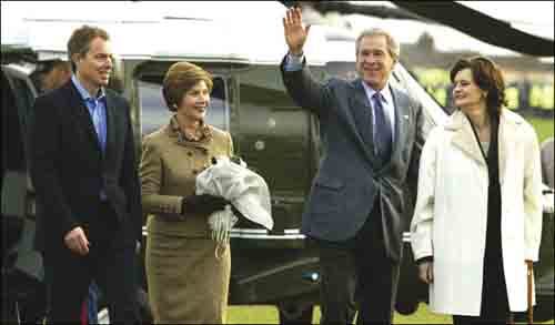 切麗披露稱(chēng),在她和克林頓夫婦建立牢固的關(guān)系后,當(dāng)她聽(tīng)到布什贏得了美國(guó)總統(tǒng)選舉后,她感到難過(guò)。不過(guò),當(dāng)她和布萊爾對(duì)美國(guó)進(jìn)行國(guó)事訪問(wèn)期間在戴維營(yíng)第一次與布什夫婦見(jiàn)面時(shí),她和布萊爾與布什夫婦相處得很好,他們當(dāng)天晚上一起看了一部DVD。切麗對(duì)媒體披露:“當(dāng)我們與布什夫婦度過(guò)第一個(gè)晚上時(shí),我們很早就吃了晚飯。吃完晚飯后,布什說(shuō)‘我們?yōu)槭裁床豢匆徊侩娪澳?他解釋說(shuō),他有所有新片的DVD碟片。我們那晚看了由羅伯特-德尼羅主演的《拜見(jiàn)岳父岳母》。布什其實(shí)是一個(gè)非常好玩、有吸引力的男人,他有一種很奇怪的幽默感。他說(shuō),媒體對(duì)他印象不佳的原因是‘我說(shuō)得州話!?肆诸D也來(lái)自南方,雖然他可能會(huì)說(shuō)南方話,但他的思維并不像南方人。”