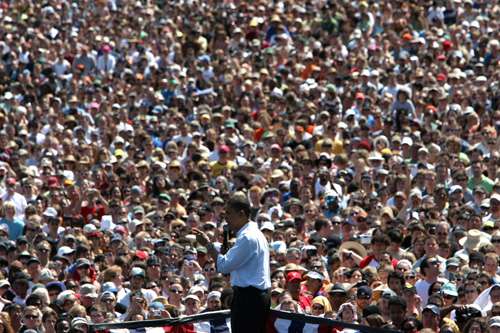 美國民主黨總統(tǒng)競(jìng)選人奧巴馬十八日在俄勒岡州對(duì)民眾演講。